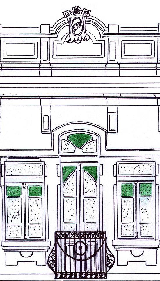 caneta esferográfica, imagens de uma cidade que aos poucos foi desaparecendo, com ênfase nos detalhes arquitetônicos, característicos de um encontro de