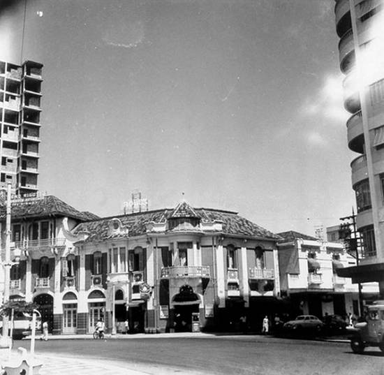 Ainda na década de 1920, outra imagem, feita de uma sacada do Palacete Áurea Conde, com o bonde da linha 3 e seu reboque passando pela praça: