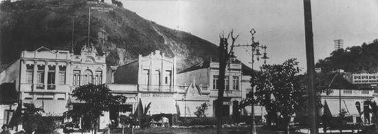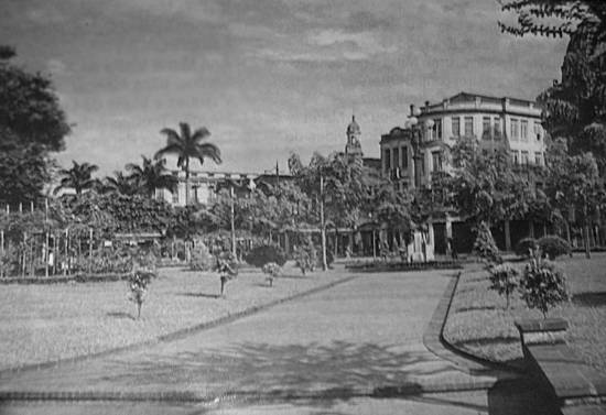 Esta foto é de 1929, mostrando a Praça Mauá (no trecho onde seria erguido o prédio da Prefeitura), e ao fundo as edificações na esquina da Rua D.