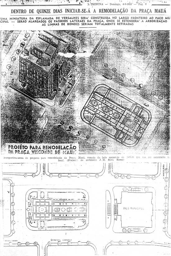O projeto para a remodelação da Praça Visconde de Mauá foi divulgado na edição de 4 de setembro de 1938 do jornal santista A Tribuna,