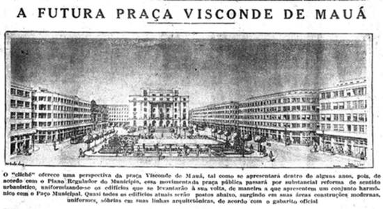 O cliché oferece uma perspectiva da praça Visconde de Mauá, tal como se apresentará dentro de alguns anos, pois, de acordo com o Plano