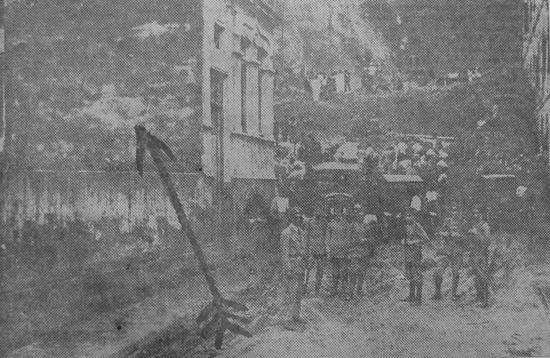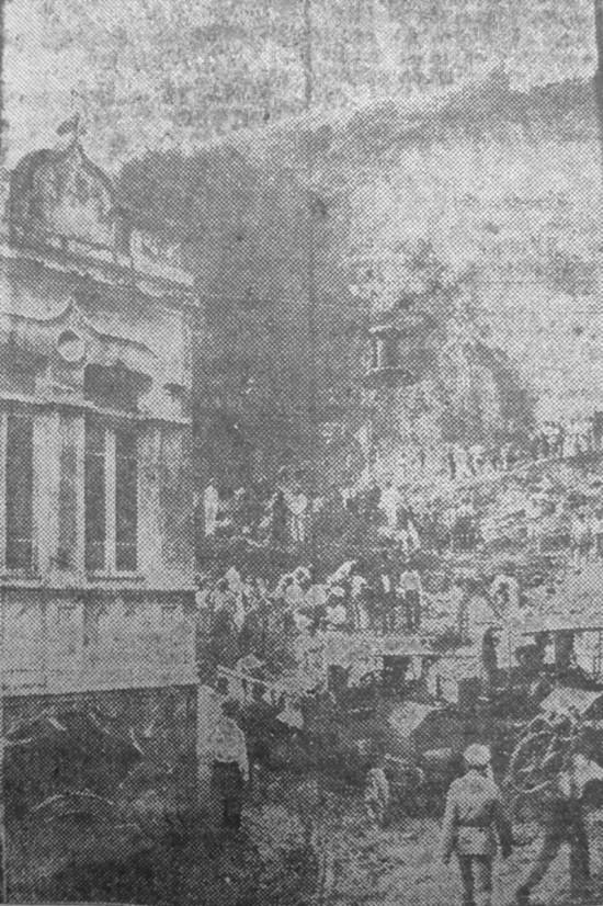 "O clichê acima mostra a primeira fase dos trabalhos, isto é, o que até agora foi feito pelos devotados trabalhadores que, dia e noite, removem escombros"