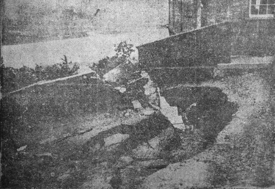 "Como é de domínio público, parte do alto do Monte Serrat, próximo ao muro do Cassino, apresenta extensa abertura, produzida pelo desagregamento de terra.É extensa como dissemos e profunda. Pouco a pouco se alarga, tomando a parte, que se desloca, pronunciada obliqüidade. Para controlar esse afastamento, colocou-se sobre os dois terrenos uma vara. Os curiosos que se vêem no clichê observam a profundidade, que ainda não pôde nem poderá ser medida"