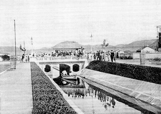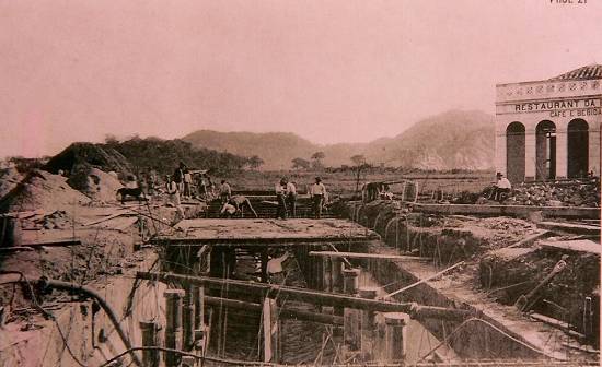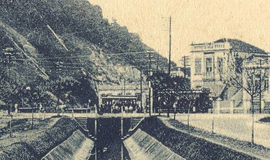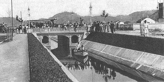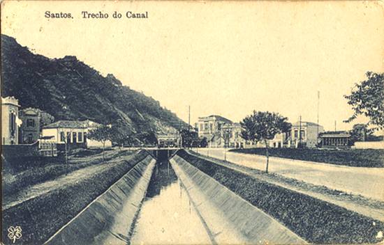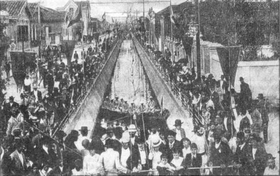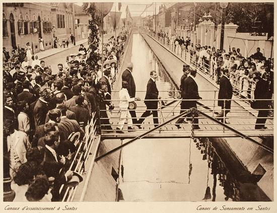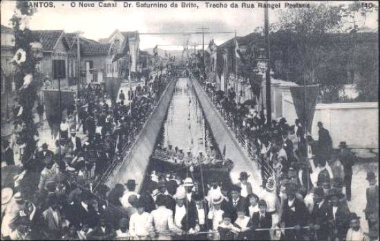 Esta foto foi feita quando da inauguração do primeiro canal, da então Rua Rangel Pestana, em 1907, sendo incluída num álbum editado por volta de 1910, com descrições em português e francês: