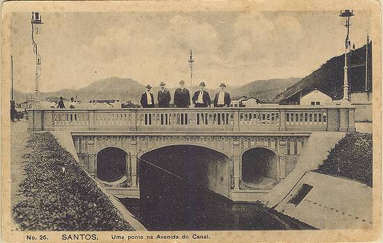 Uma das primeiras pontes em concreto sobre os canais santistas, cerca de 1907: