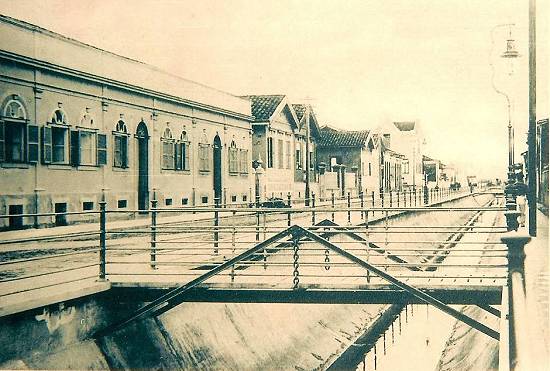Outra imagem do canal da Rua Rangel Pestana, nos primeiros anos do século XX, foi publicada por Saturnino de Brito em um de seus livros (Projetos e Relatórios - Saneamento de