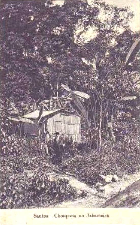 A foto de uma choupana no morro do Jabaquara ilustrou um cartão postal dos