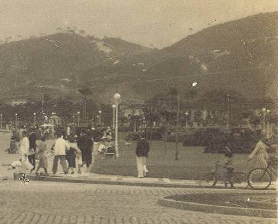 Este é o espaço que se transformou na Praça das Bandeiras, no Gonzaga. Note-se os mesmos postes de ferro que antes circundavam a estátua de Braz Cubas, no