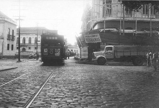 Na época em que a Western Telegraph ainda funcionava, várias linhas dos bondes (e seus reboques) faziam ponto inicial/final nas proximidades. Esta foto, de uma reforma do prédio, tem