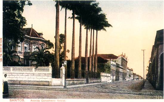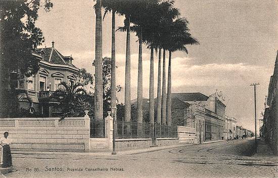 Antes chamada de Rua da Liberdade e de Rua Octaviana, a Rua e Avenida Conselheiro Nébias foi uma das criadas em função dos trilhos dos bondes, ligando o núcleo urbano central de Santos à Barra do Boqueirão, atual praia do Boqueirão, onde se situavam as chácaras e casas de veraneio da elite econômica local e paulistana.