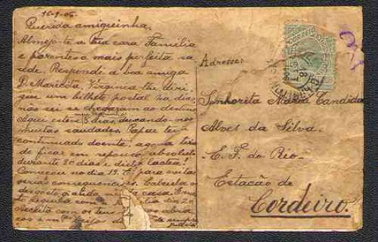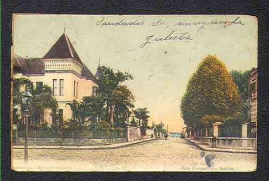 Em 16 de janeiro de 1906, era enviado para a estação ferroviária de Cordeiro, no Rio de Janeiro, este cartão postal, mostrando o trecho inicial da Rua Conselheiro Nébias: