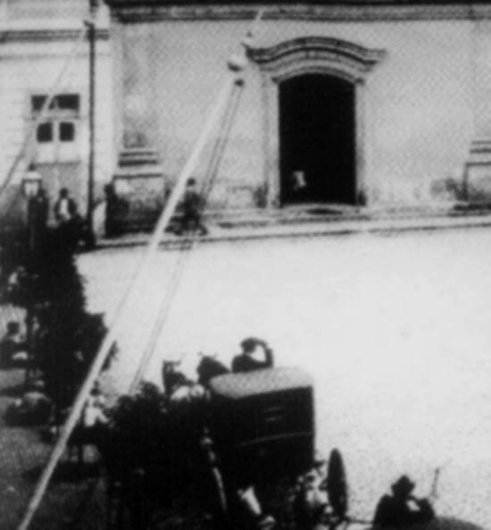 Observe-se, no detalhe desta foto, o bonde com tração animal: