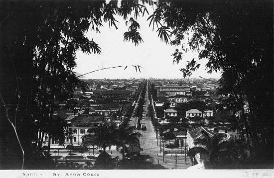 1903, mostra a Avenida Ana Costa já aberta, mas ainda sem a arborização que a caracterizaria no restante do século, quando o desenvolvimento dessa área elegeria essa via como uma das principais
