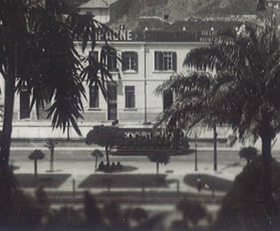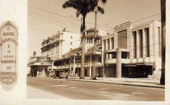 Hotel Atlântico e à direita o cine-teatro transformado em Cassino Atlântico (e já fechado então, devido à proibição dos jogos de azar no Brasil em 1946):