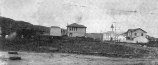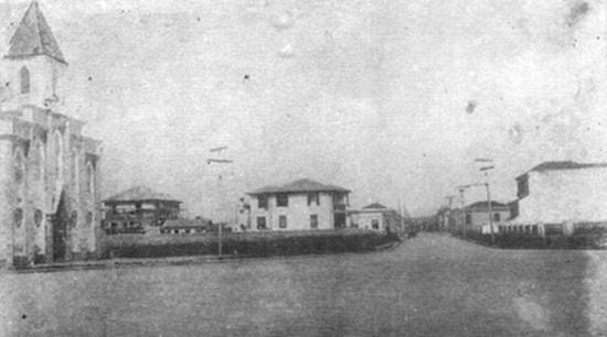 | Em 1930, era pequena a ocupação urbana ao redor da Igreja Nossa Senhora da Pompéia, vista nesta foto tendo à frente a Rua Floriano Peixoto: