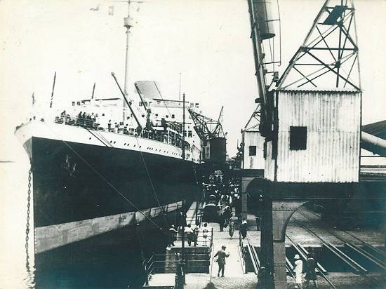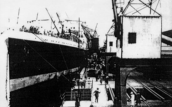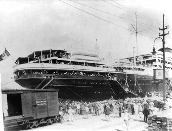 No início do século XX, navios constantemente chegavam ao porto santista com levas de migrantes, como este: