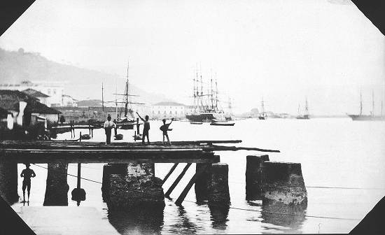 Porto de Santos próximo à Alfândega, em foto de Militão Augusto de Azevedo
