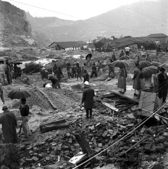 Equipes de salvamento na encosta do Monte Serrat, em 1956