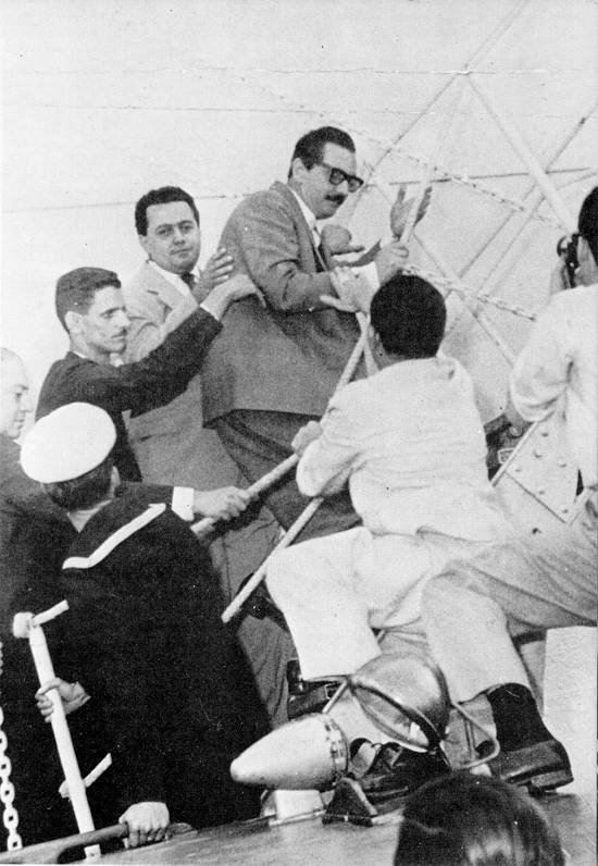 ex-presidente, alheio aos graves problemas surgidos na esteira de sua renúncia, seguia para Santos, onde embarcava no navio