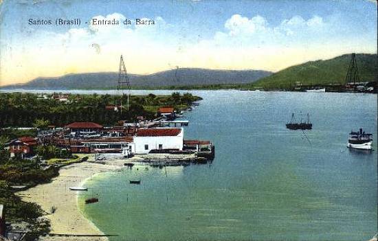 Sobre essa imagem, anota o jornalista e cartofilista José Carlos Silvares, possuidor de um exemplar com paleta de cores um pouco diferenciada: "Este antigo cartão-postal originalmente colorizado mostra a entrada do Porto de Santos, como era vista nos anos de 1920, um pouco antes da curva onde hoje existem o Silo e o Armazém de Passageiros. Veja, ao fundo, as torres de energia da Companhia Docas. A área foi posteriormente aterrada para a ampliação do porto. A imagem foi feita a partir de fotografia de Colombo & Francesconi, editada pela Livraria Edanee, de São Paulo, com filiais no Rio de Janeiro e em Santos. Note-se as casas de pescadores, estaleiros e a área verde. O cartão foi postado em Santos e enviado para Paris no dia 20 de outubro de 1929":