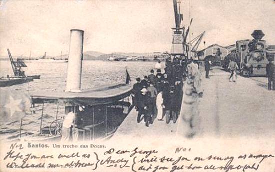| Nos primeiros anos do século XX, as embarcações movidas a vapor já reinavam no porto santista, grandes e pequenas, desaparecendo as seculares caravelas. O