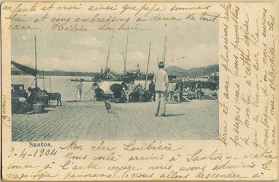 Em 9 de abril de 1904, Héléne Loubière postava com destino ao "Señor Bernardo Loubière" este "bilhete postal", com o restante do texto manuscrito em francês ao redor da imagem.