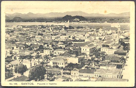 Na época (1914/1918)  em que ocorreu o conflito que seria conhecido como a Primeira Guerra Mundial do século XX, Santos continuava sendo uma cidade pacata, ainda concentrada no trecho Valongo-Paquetá, mas já iniciando a ocupação da zona Leste da ilha, em direção às praias. São desta época estes cartões postais: