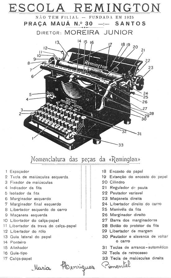 tivesse aprendido datilografia. E uma das mais tradicionais escolas santistas nessa especialidade era a Escola Remington, que emprestava o nome da