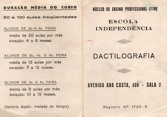 forma intensiva (duas horas por dia) poderia ser concluído em três meses. Existiam ainda cursos rápidos de 30 ou 60 dias.