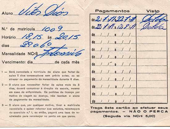 Este folheto descritivo era entregue a cada aluno, na primeira aula, para que se