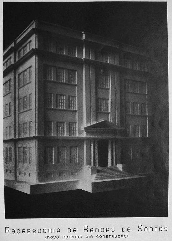 "Dentro de poucos meses, a cidade de Santos será dotada de um dos mais belos edifícios públicos - A RECEBEDORIA DE RENDAS ESTADUAL -. De há muito que a administração pública vem resolvendo, dentro