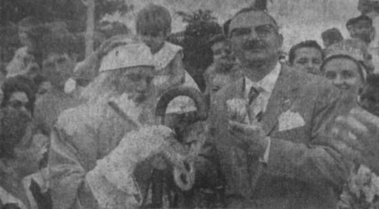 No palanque, além do presidente do Conselho de Turismo, havia o dr. João Silva Jr., prefeito de Cambuquira, ora em ligeira estação de repouso em Santos, acompanhado de sua família. Nenhuma outra autoridade, nem mesmo qualquer membro da Comissão Executiva dos Festejos Natalinos. Havia, porém, no palanque, grande massa popular. Com extrema dificuldade, o "Amigo das Crianças" alcançou o imponente iate (motorizado) e assim foi iniciado o grande desfile noelino, entre o Gonzaga e o Boqueirão, pela segunda pista da Av. Vicente de Carvalho.