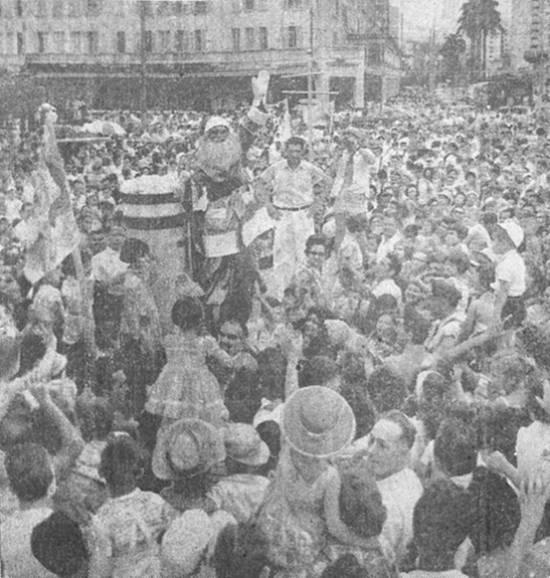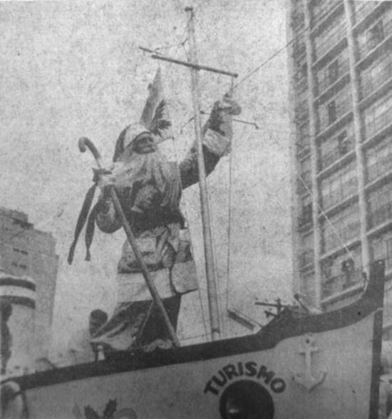 Ornamentação de vitrines das lojas - muitas delas já não mais atuantes - e nas principais ruas, um Papai Noel que abandonou o trenó para chegar de iate... sobre rodas, e uma festa que mais lembrava o Carnaval: assim foi o Natal em 1960, como demonstram estas fotos, publicadas em dezembro daquele ano nas páginas do jornal santista A Tribuna: