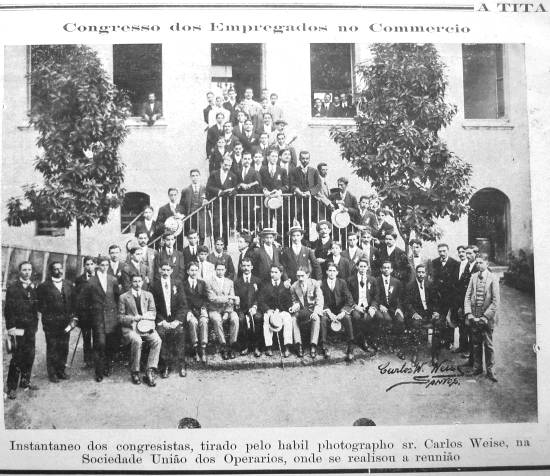 início do século XX, Carlos Weise registrou estas duas imagens de um congresso de empregados no comércio, realizado em