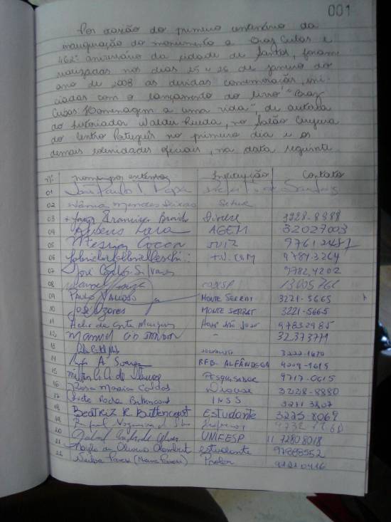 pelos participantes, para registro histórico, sob responsabilidade do Instituto Histórico e Geográfico de Santos (IHGS):