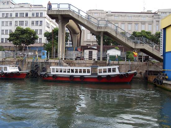 Pontão de travessia para Vicente de Carvalho, no centro santista, atrás da Alfândega