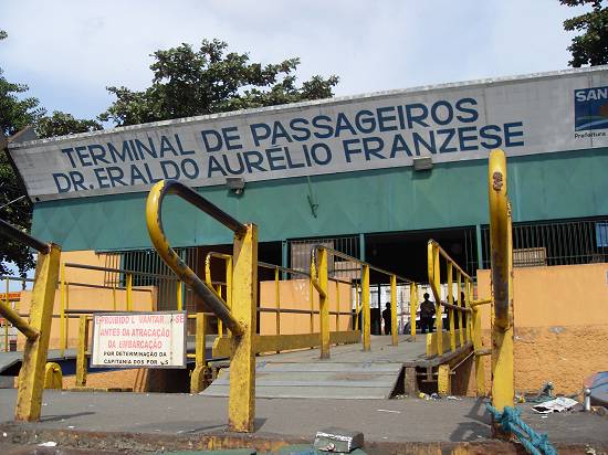 Terminal de passageiros de catraias na Bacia do Mercado, no bairro Vila Nova, em Santos
