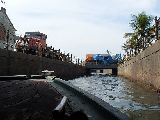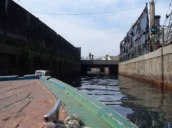 Canal de saída da Bacia do Mercado em direção ao estuário, sob as avenidas do porto