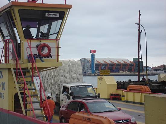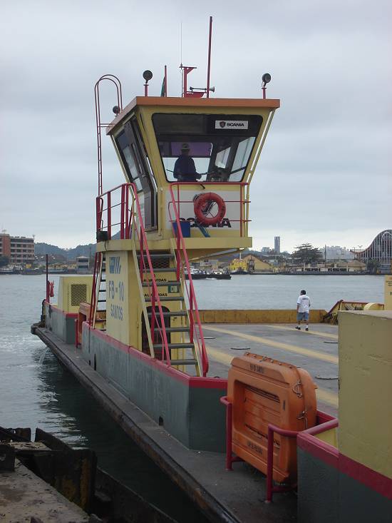 Balsa Paicará usada pelo Dersa tanto na travessia desde a Alfândega como na da Ponta da Praia