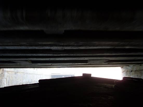 teto sob as pontes viárias do porto. São três minutos de uma travessia bem apertada!