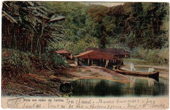 Arredores de Santos pode ser, no caso deste postal do início do século XX, qualquer lugar na área insular da cidade, a partir de um quilômetro do centro urbano, onde se poderia