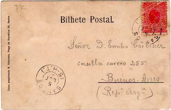 O cartão foi postado em Santos, com destino a Buenos Aires: