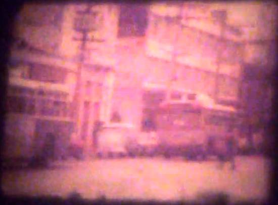 Um fragmento desse filme foi também colocado no YouTube naquela data, mostrando os trólebus que circulavam então na cidade (são vistos três deles, da Fiat italiana, circulando pela Avenida São Francisco [*], possivelmente junto à Praça José Bonifácio). Clique >>aqui<< ou na imagem abaixo para obter o vídeo, de 14" e 823 KB: