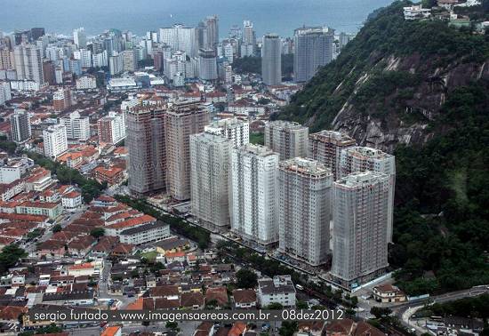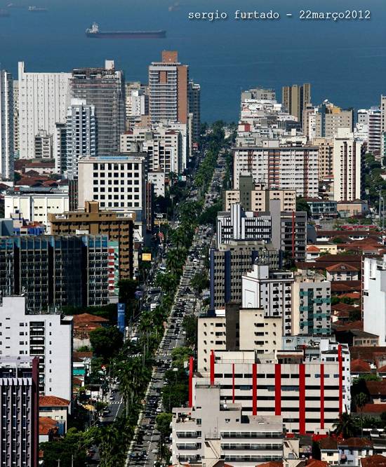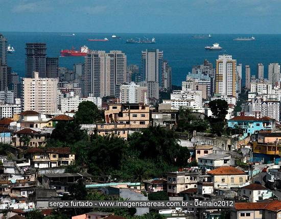 Achou o bairro? Aparecida, com a Ponta da Praia ao fundo... Agora, ache o navio...
