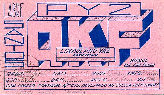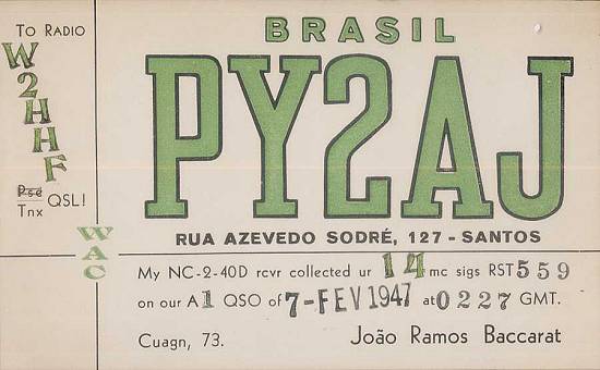 de contato radiofônico (QSO) com radioamadores santistas, nas décadas de 1940 e 1950, mantidas no Arquivo Histórico do Radioamadorismo Brasileiro