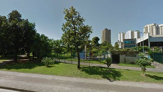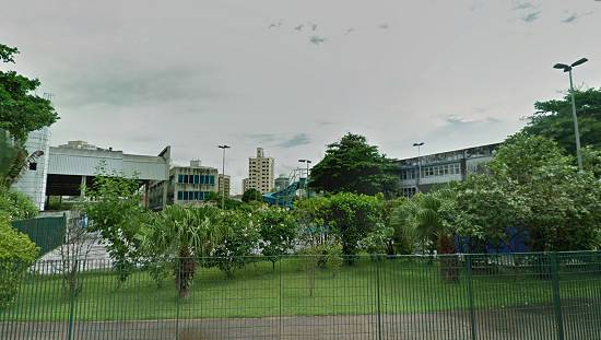 parque de lazer urbano, com brinquedos para as crianças, áreas para a prática de esportes, um ginásio e até áreas para a prática de aeromodelismo e ferreomodelismo. Nesta foto, as instalações
