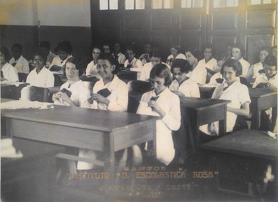 Em capa vermelha, apenas com a indicação "1935" junto a uma das fotos, um antigo álbum fotográfico mostra o interior do Instituto Dona Escolástica Rosa e até flagra o final da confecção da estátua da "leoa" que faria a alegria das gerações seguintes nos jardins da praia. O álbum estava entre os pertences do professor Valdemar Tavares Júnior, falecido em 11 de julho de 2017, e foi entregue ao historiador e também professor Francisco Carballa, que dias depois cedeu os originais para reprodução por Novo Milênio: