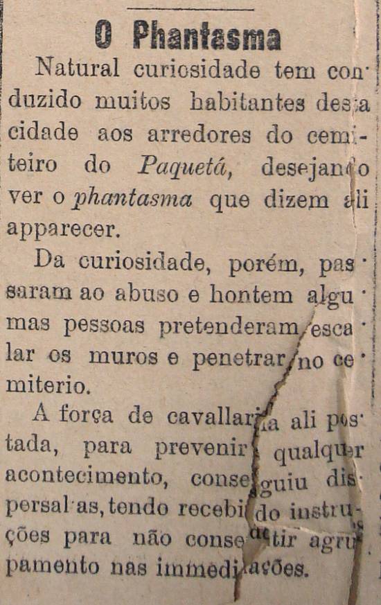 cemitério do Paquetá, desejando ver o fantasma que dizem ali aparecer.