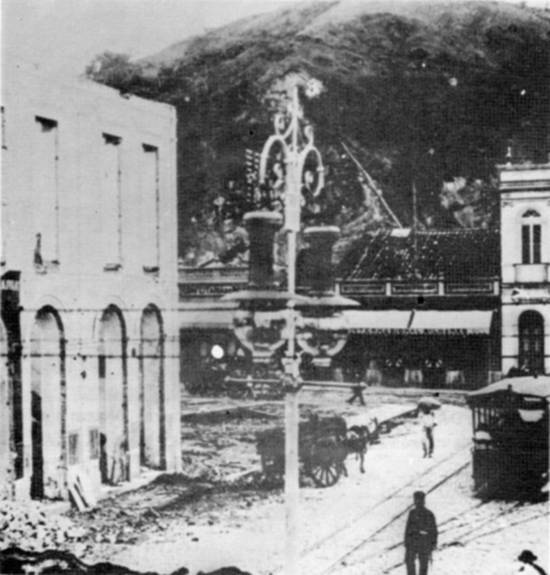 a iluminação pública elétrica, citando o jornal A Tribuna: "As lâmpadas colocadas à distância de 50 metros, no
