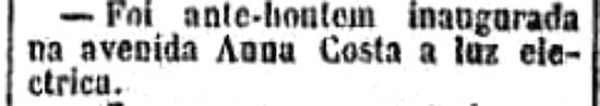 Numa noite de sábado, em 15/8/1903, foi inaugurada na Av. Ana Costa